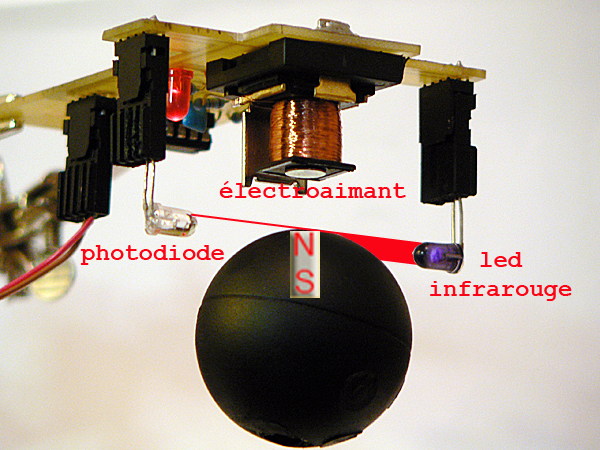 Ce petit montage permet de toucher du doigt le phénomène de la sustentation électromagnétique, dont le principe de base est le même que celui des Maglev allemands et japonais, pourvus de systèmes beaucoup plus élaborés que celui-ci. Quoi qu'il en soit, il est tout de même étonnant d'imaginer que, d'après les théories actuelles, ce sont des particules aussi immatérielles que les photons qui maintiennent cette balle de ping-pong et cette bille d'acier en équilibre. Et que dire des trains cités plus haut ! C'est vrai aussi que les gravitons qui attirent ces objets vers le bas sont des particules encore plus mystérieuses, qu'aucune expérience n'a réussi à mettre en évidence à ce jour !